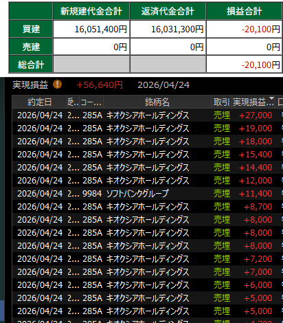 デイトレ結果 4月16日 実現損益+2万円!